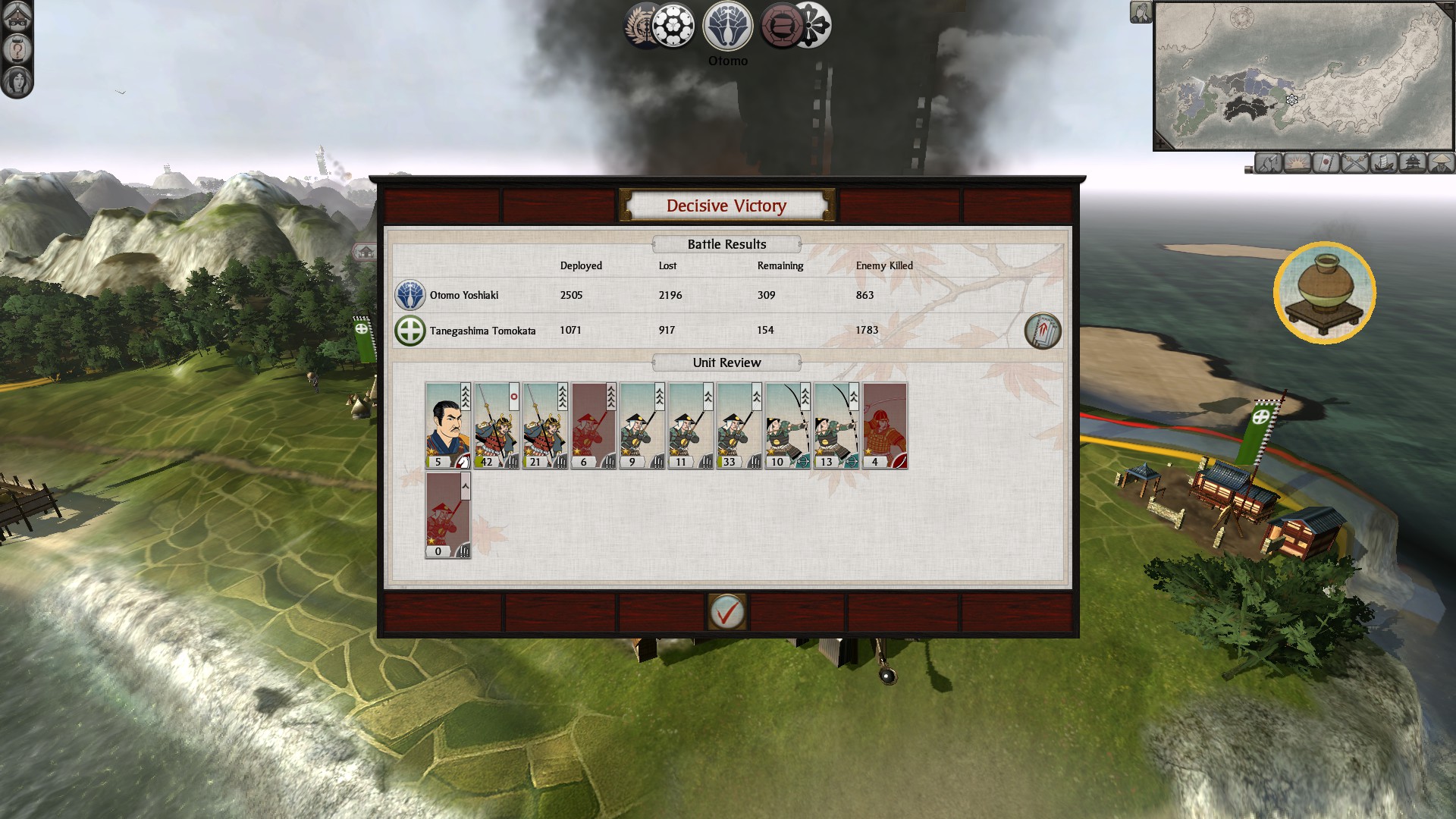 First the minor clan the Ouchi assaulted with what I thought was a massive force, from my small fort I could see more than fifteen hundred ashigaru surrounding it’s walls. They advanced slowly and began scaling the walls but I had enough experienced footsoldiers manning the walls to push them off their ladders and route them from the field. It was a glorious victory my advisor told me.